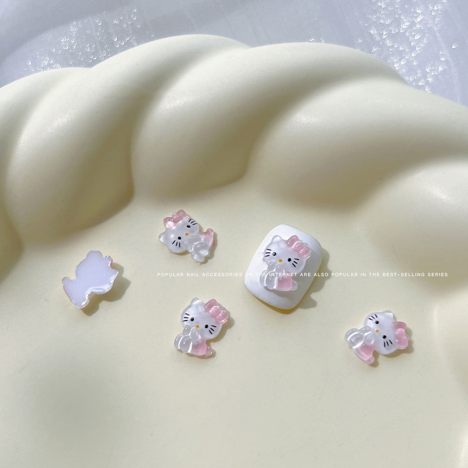 Pink Full Body Kitty Nail Charms with Bow 9*12mm (5pcs)