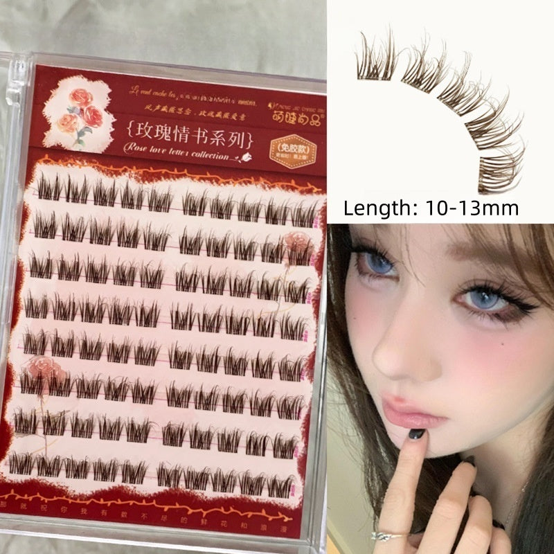 Glue Free DIY False Cluster Lashes - 5D Dark Brown Cat Ear Style