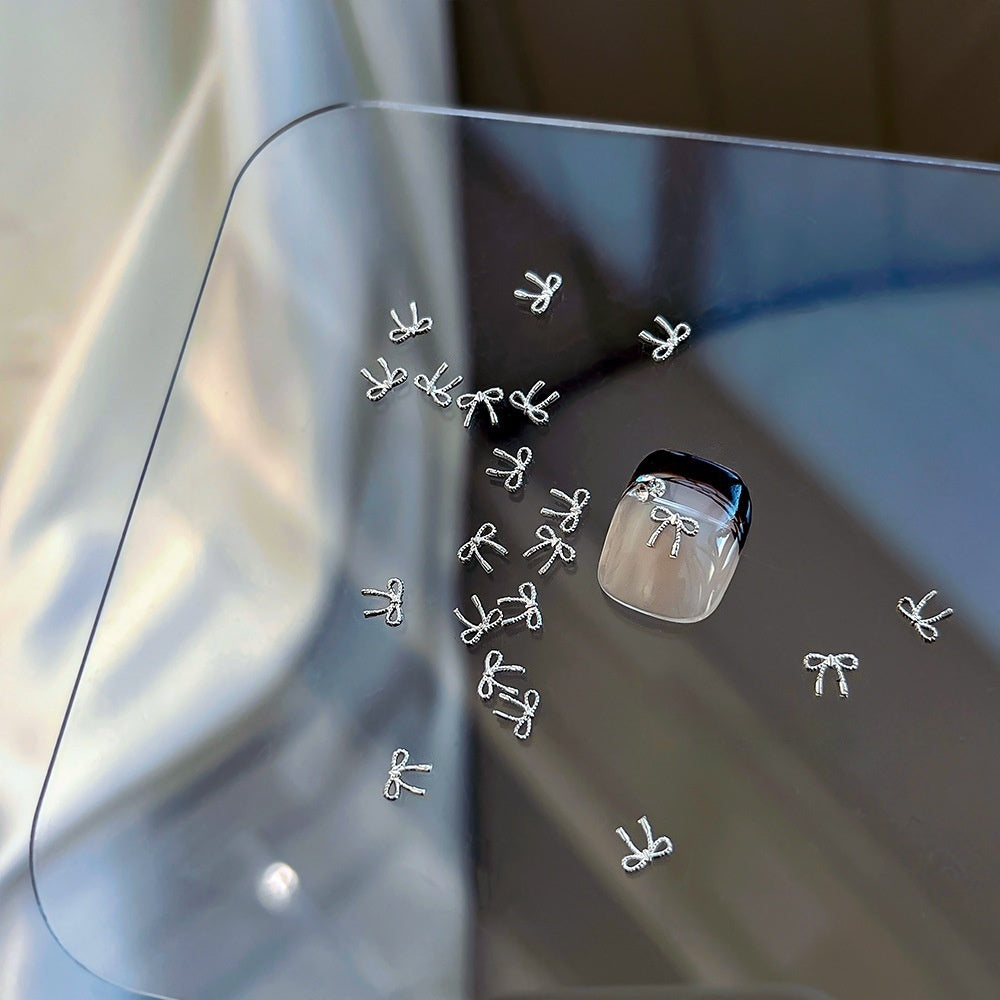 Add a touch of sweetness and sparkle to your manicure with our Mini Silver Cute Bow Nail Charms ✨
