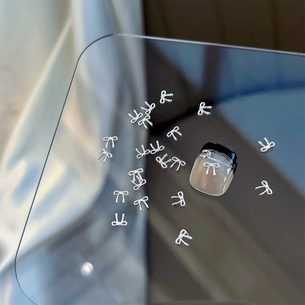 Add a touch of sweetness and sparkle to your manicure with our Mini Silver White Cute Bow Nail Charms ✨