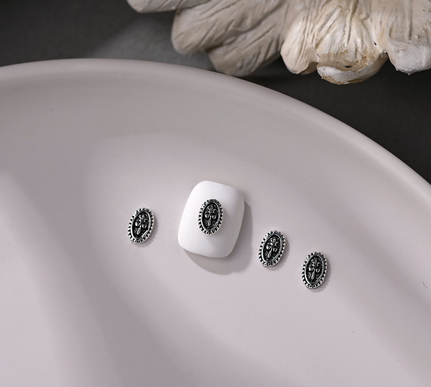 Bring timeless elegance to your nail designs with these Vintage Silver Oval Floral Charms. 🌸